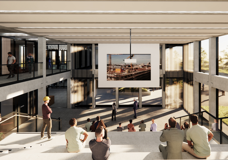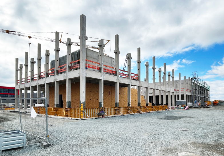 Auf rund 2.500 m² Bruttogeschossfläche entsteht ein hochmodernes Bildungszentrum, das künftig optimale Bedingungen für interne und externe Schulungen bietet. Der Rohbau und die Tragstruktur sind abgeschlossen, und die Dacharbeiten stehen kurz vor dem Abschluss – das Gebäude nimmt nun deutlich Gestalt an.
