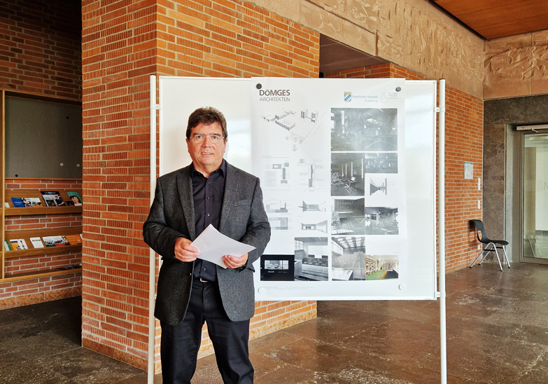 Die ehemalige Pädagogische Hochschule Augsburg, geplant vom Landbauamt Augsburg unter Federführung des Architekten Wilhelm Hauenstein, gilt als Meisterwerk der deutschen Nachkriegsarchitektur. In den zweistündigen Führungen erläuterte unser Projektleiter Helmut Obermeyer den interessierten Besuchern die Entstehungsgeschichte der ersten bayerischen Pädagogischen Hochschule in den 1950er-Jahren: