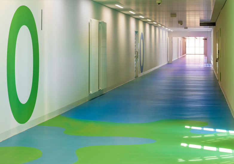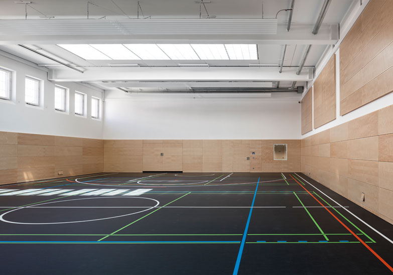 Diese Konzeption ermöglicht die witterungsunabhängige Erreichbarkeit sämtlicher Gebäude. Zwischen den Gebäuden entstehen Höfe, die für Freizeit, Sport, Anlieferung und Entsorgung genutzt werden.