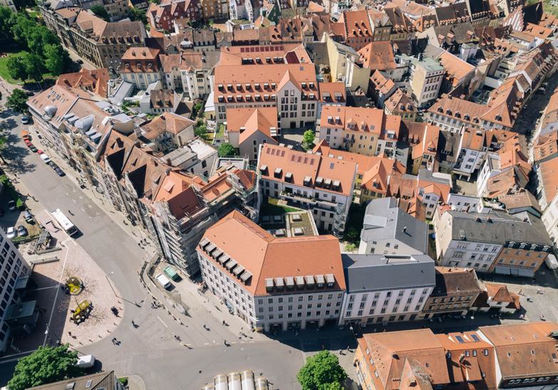 Mit der Sanierung von denkmalgeschützten Gebäuden und der Errichtung von Neubauten plante die Sparkasse Bamberg die Entwicklung eines innerstädtischen Areals für Wohn-, Hotel- und Einzelhandelsnutzungen zwischen Lange Straße und Franz-Ludwig-Straße. Historische Relikte der Bamberger Stadtmauer aus dem 13. und 15. Jahrhundert werden dabei sensibel integriert und erlebbar gemacht.
